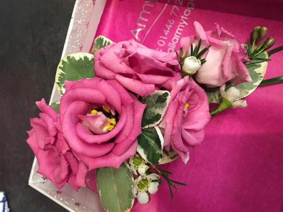 Beautiful pink Lisianthus corsage, light to wear and delicate.
