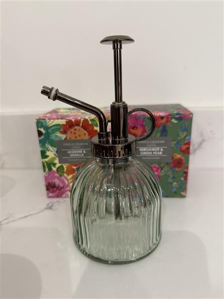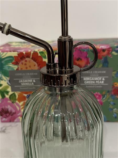Pretty light green glass mister. A lovely addition to a plant gift. Always on hand to keep your plants happy.