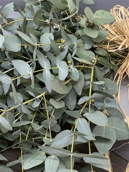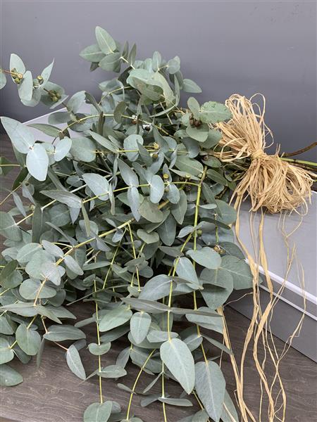 Natural Eucalyptus foliage tied together with raffia. A large bunch that smells Devine and can be simply placed in a vase, dried or used in the shower to scent the air.