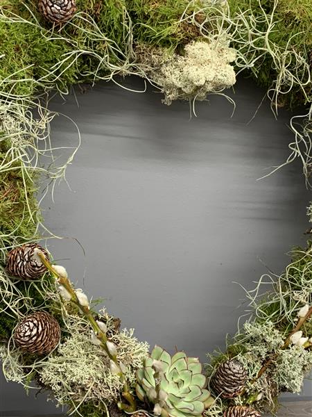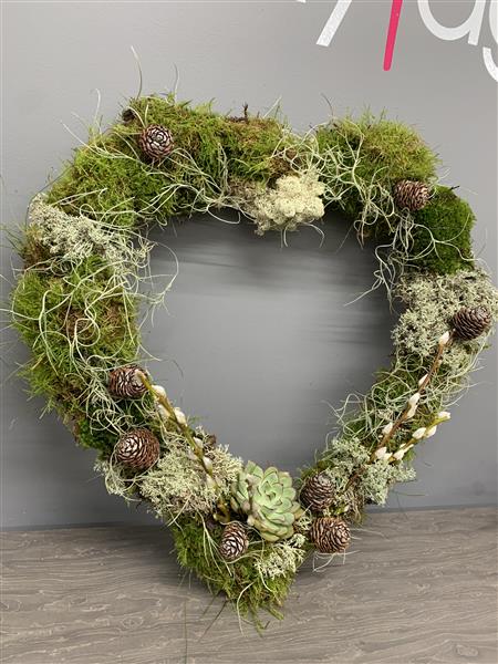 Natural mosses both green and islelandic formed into a large heart shape.