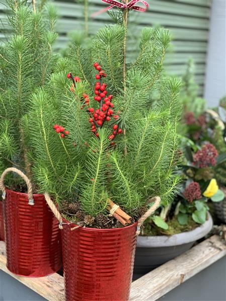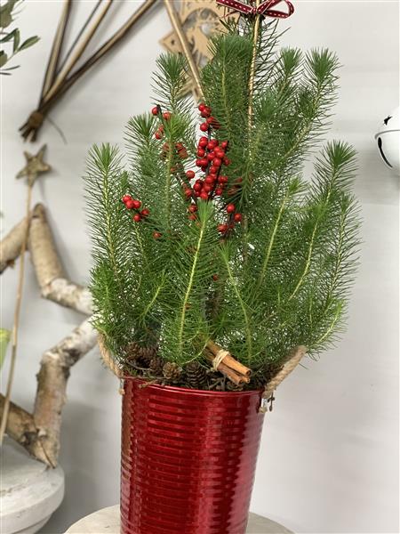 Silver crest 60cm pine tree is a lovely soft fresh green pine. Presented in a shiny red metal long pot.