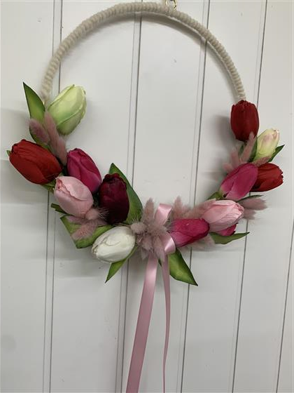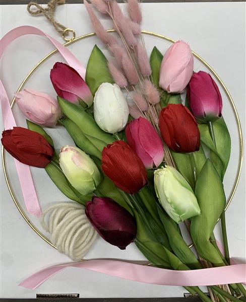 Make your own or send as a gift this lovely kit to create a silk tulip and dried flower ring hang it on a door or inside the house.