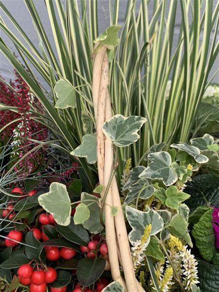 XL oval cream basket filled with seasonal plants both flowering and foliage. Easy to care for and can be used outdoors. Plants will vary as the seasons change but always interesting and long lasting.