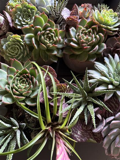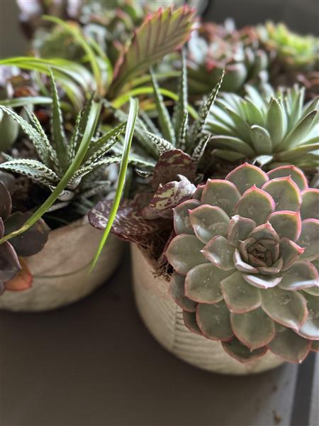 A ceramic bowl packed with easy to care for succulents. Approx 16cm x 12cm this arrangement of growing plants will last for years.